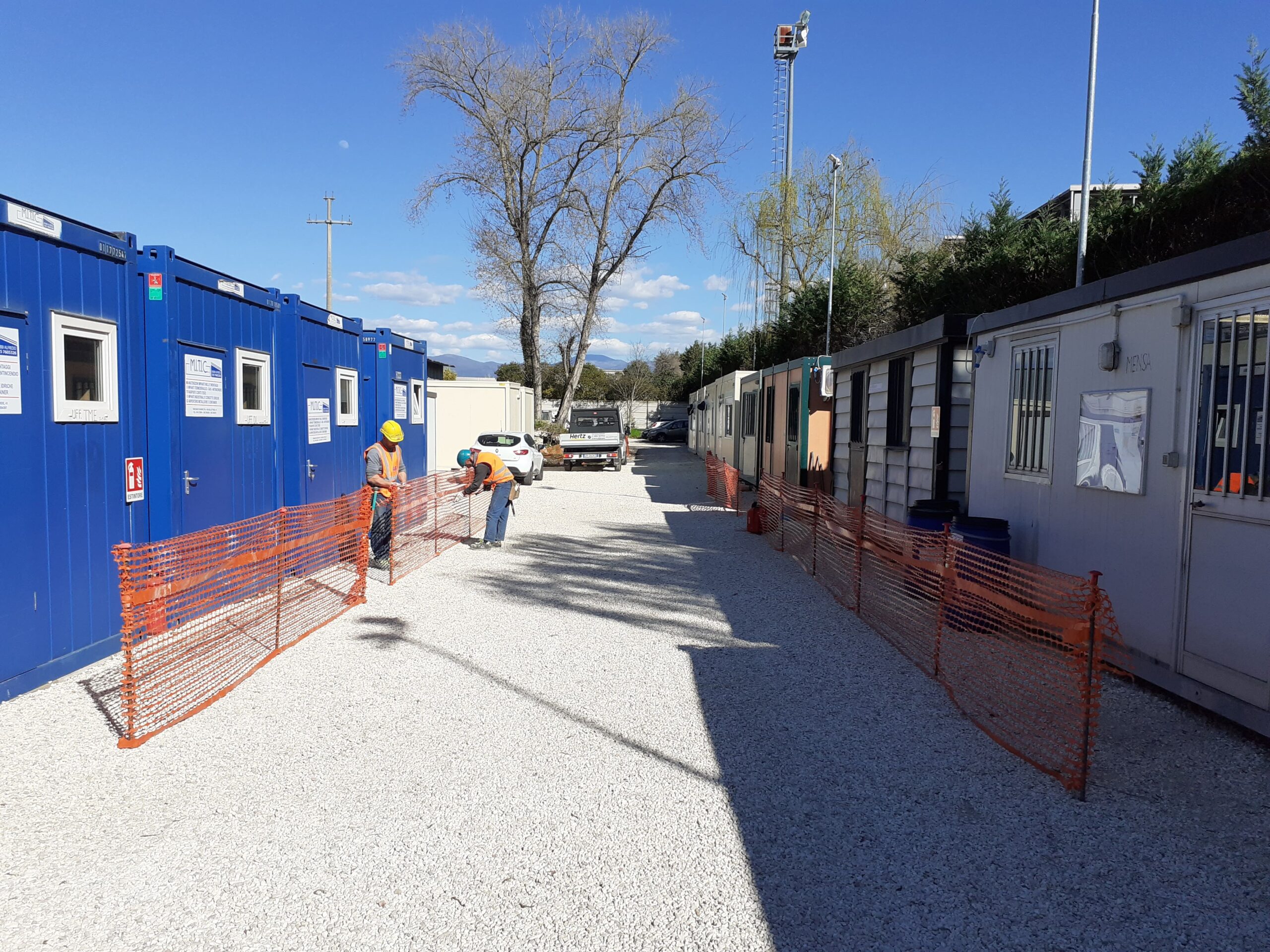 Opere di cantierizzazione generali come posizionamento baraccamenti e realizzazioni relativi impianti, realizzazione di recinzioni classiche e particolari come new jersey e pannellature.