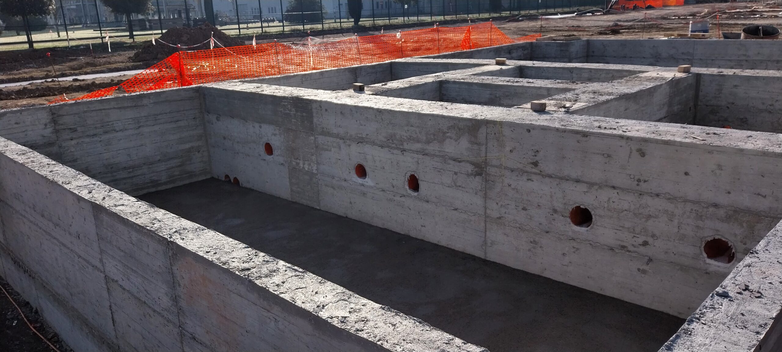Realizzazioni in cemento armato portanti come platee, basamenti, baggioli, pilastri, murature, vasche.